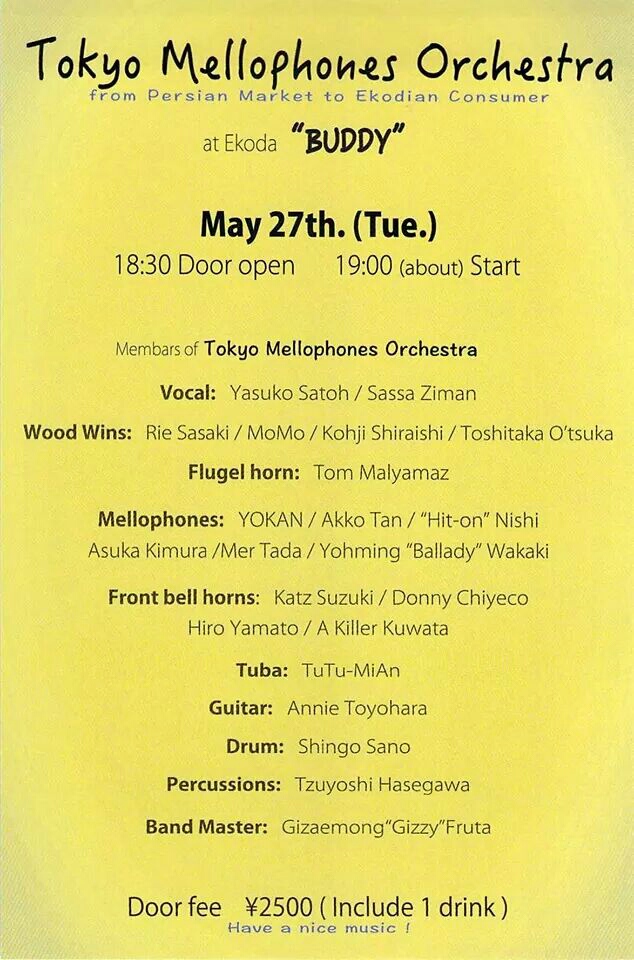 Door fee ¥2,500 (Include 1 drink)