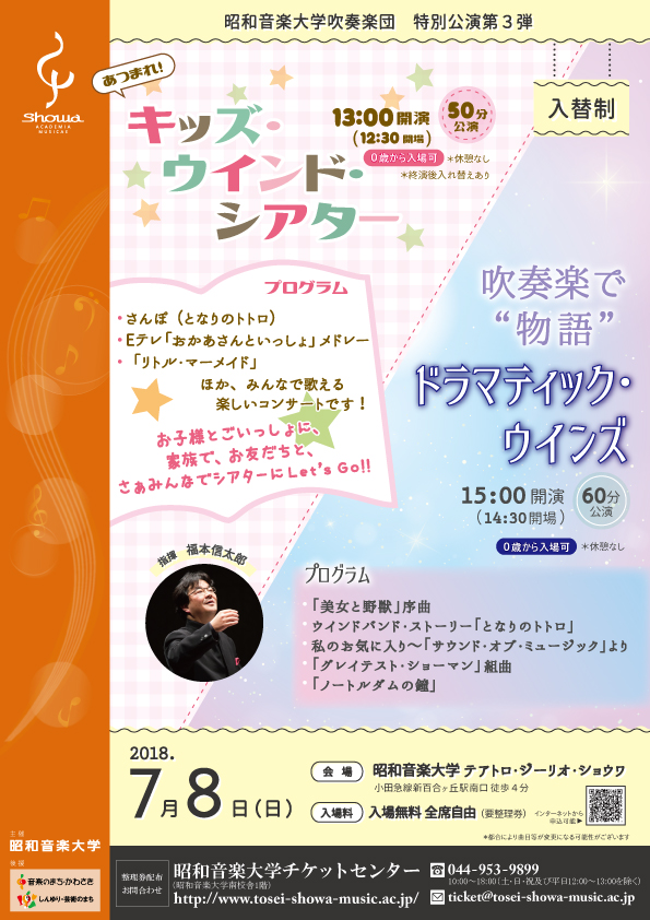 今年も昭和音楽大学のベーシック・バンドとウインド・オーケストラでキッズ向けのコンサートを開催する事になりました。