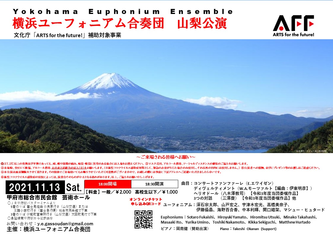 そして、文化庁「ARTS for the future!」補助対象事業としてのツアーで山梨公演のお知らせです。