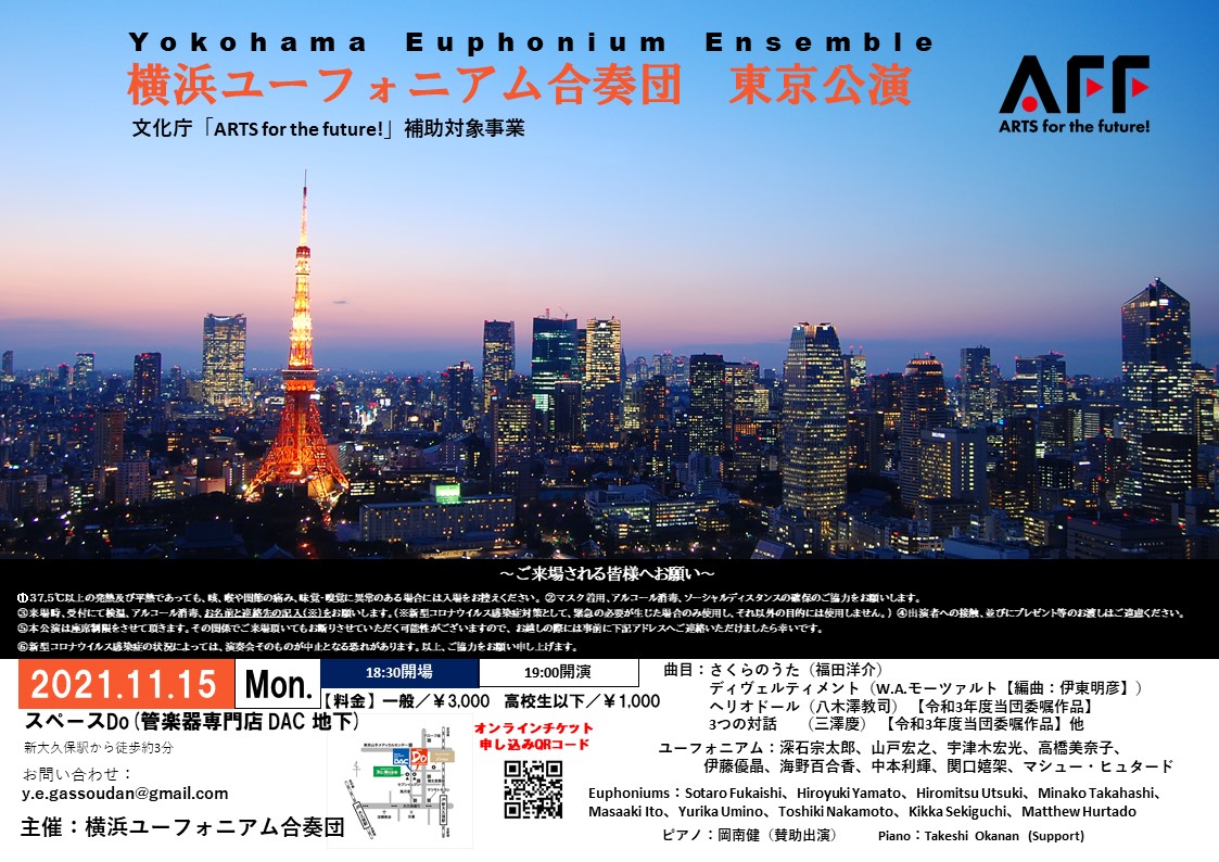 さて、文化庁「ARTS for the future!」補助対象事業としてのツアーの東京公演のお知らせです。