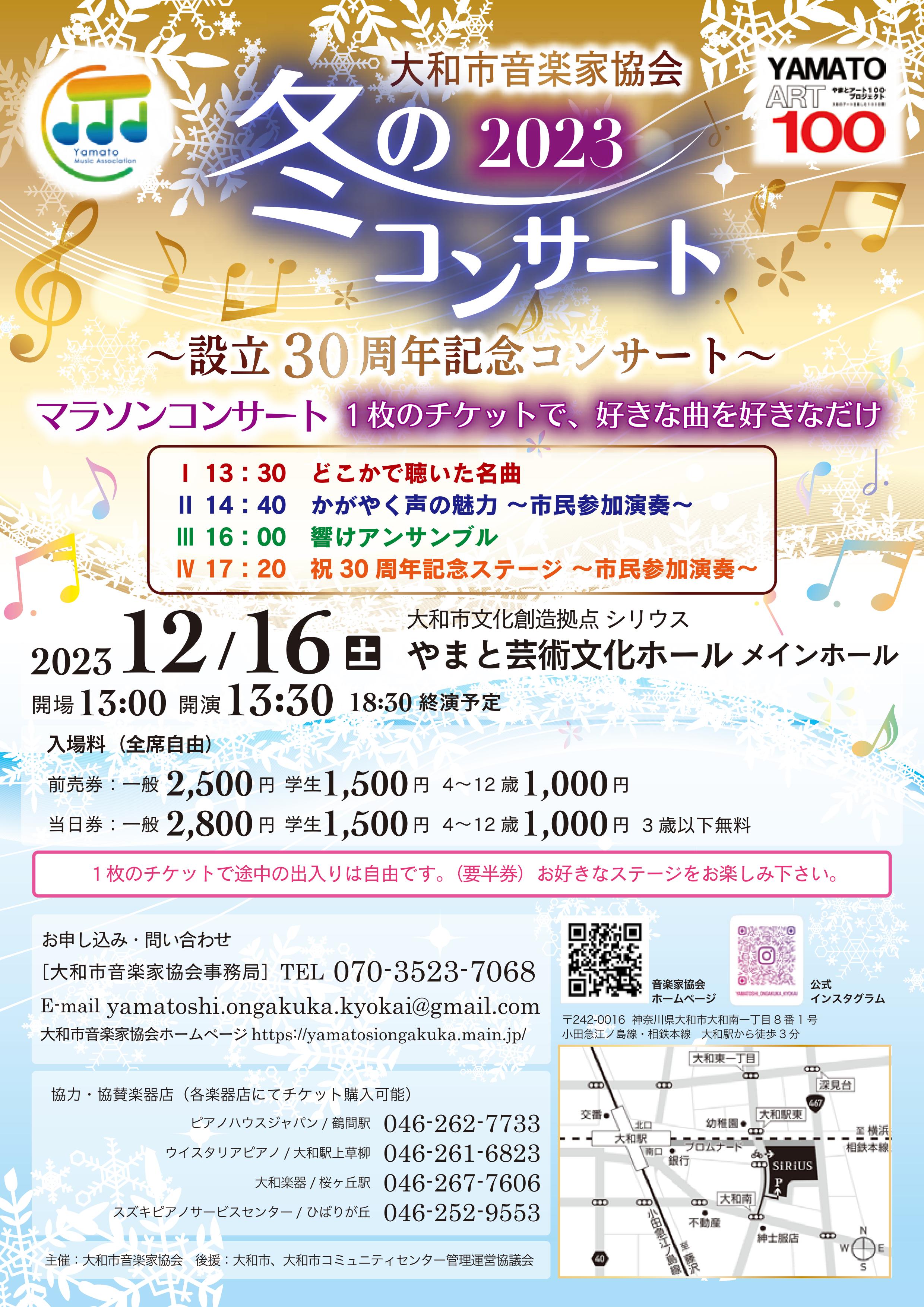 もう今週末になってしまいましたが、大和市音楽家協会の冬のコンサート…